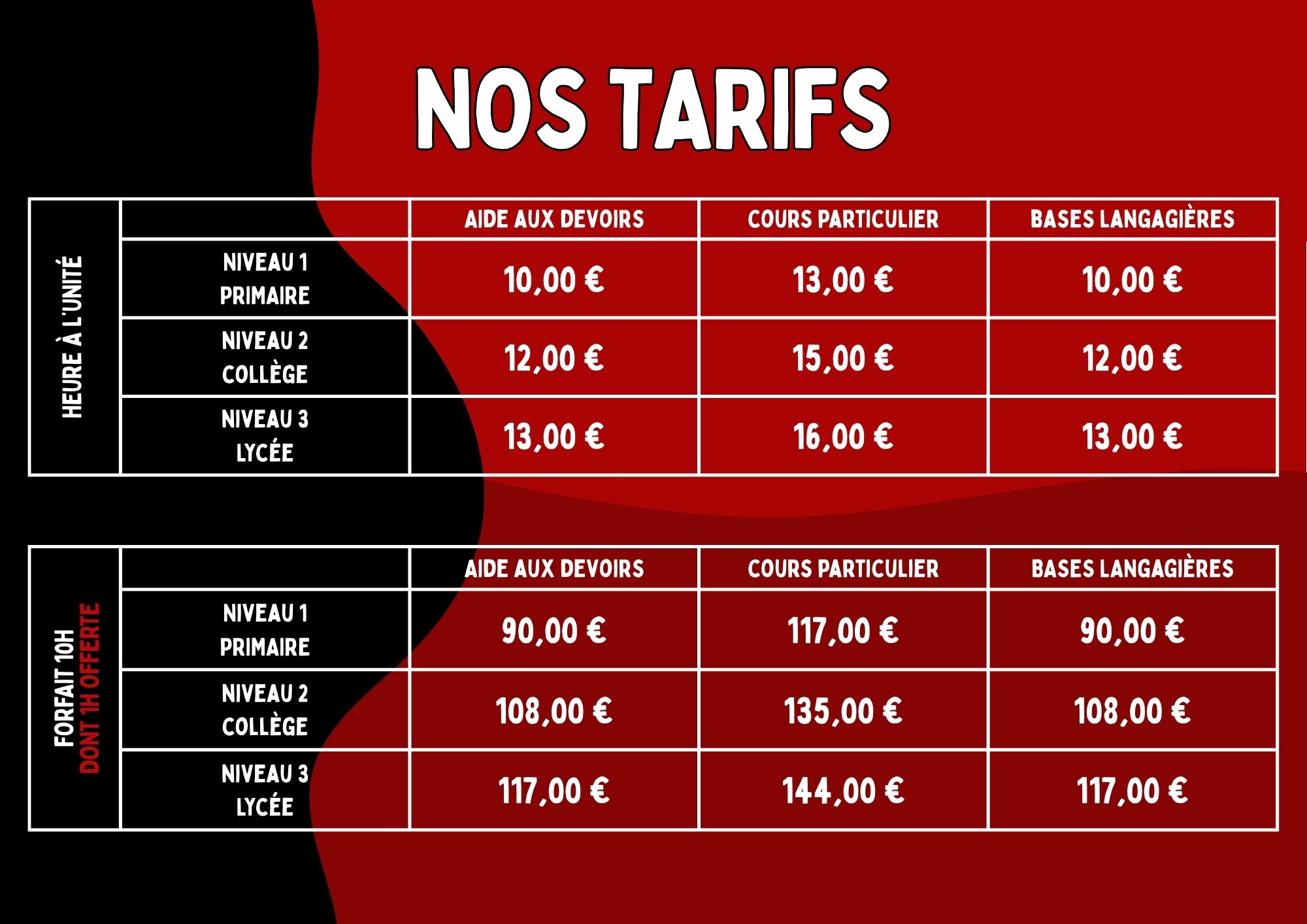 Notre structure propose de l’aide aux devoirs individuelle et collective du CP jusqu’au baccalauréat pour toutes les matières (mathématiques, sciences, français, langues, économie, commerce, vente, arts, histoire, géographie, EMC, etc.).